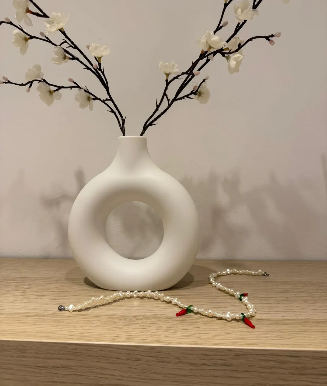 Trusa blanca y flores rosadas