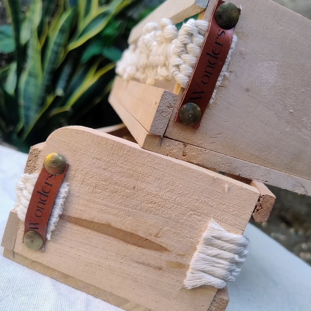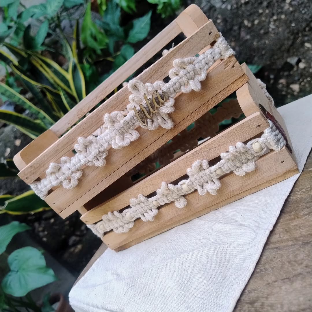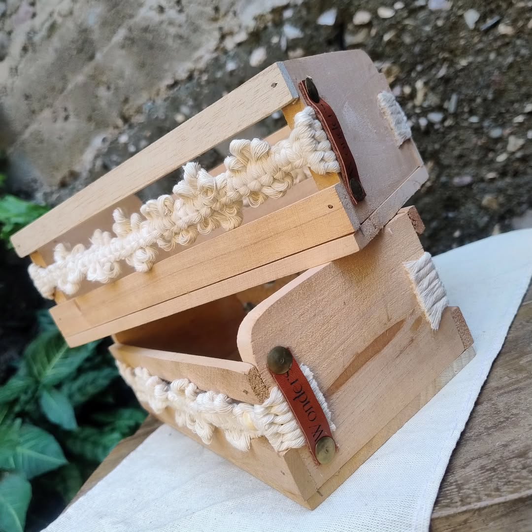 Caja de madera decorada con macramé M3